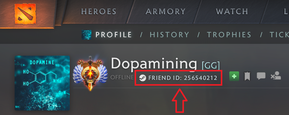 Players can be registered with the bot using their 32 bit steam account id, which can be easily found using Dotabuff or copying the Friend ID from a user's profile in Dota 2.