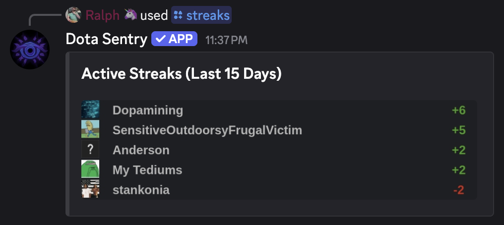 This Discord bot provides an easy way to track your friends and stay up to date on their latest Dota games. Additionally, there are a variety of statistics available. This bot can only track players with a public profile. Note: Stats start recording after a player is registered.